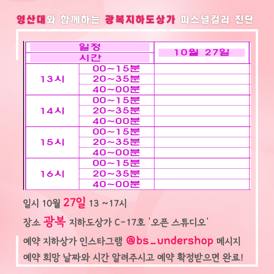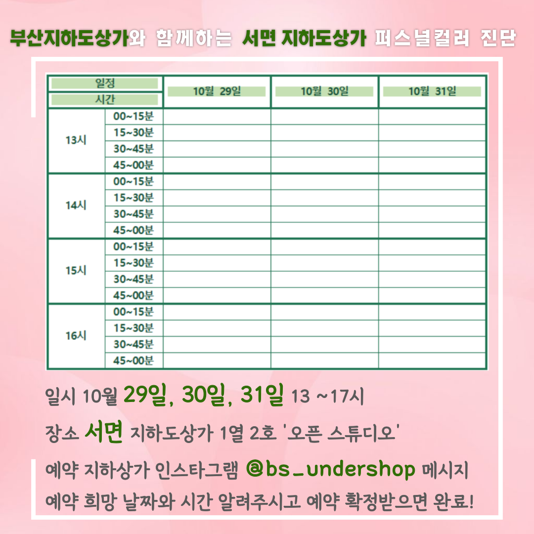 광복 지하도상가와 서면 지하도상가에서 무료 퍼스널 컬러 진단 이벤트가 열립니다!